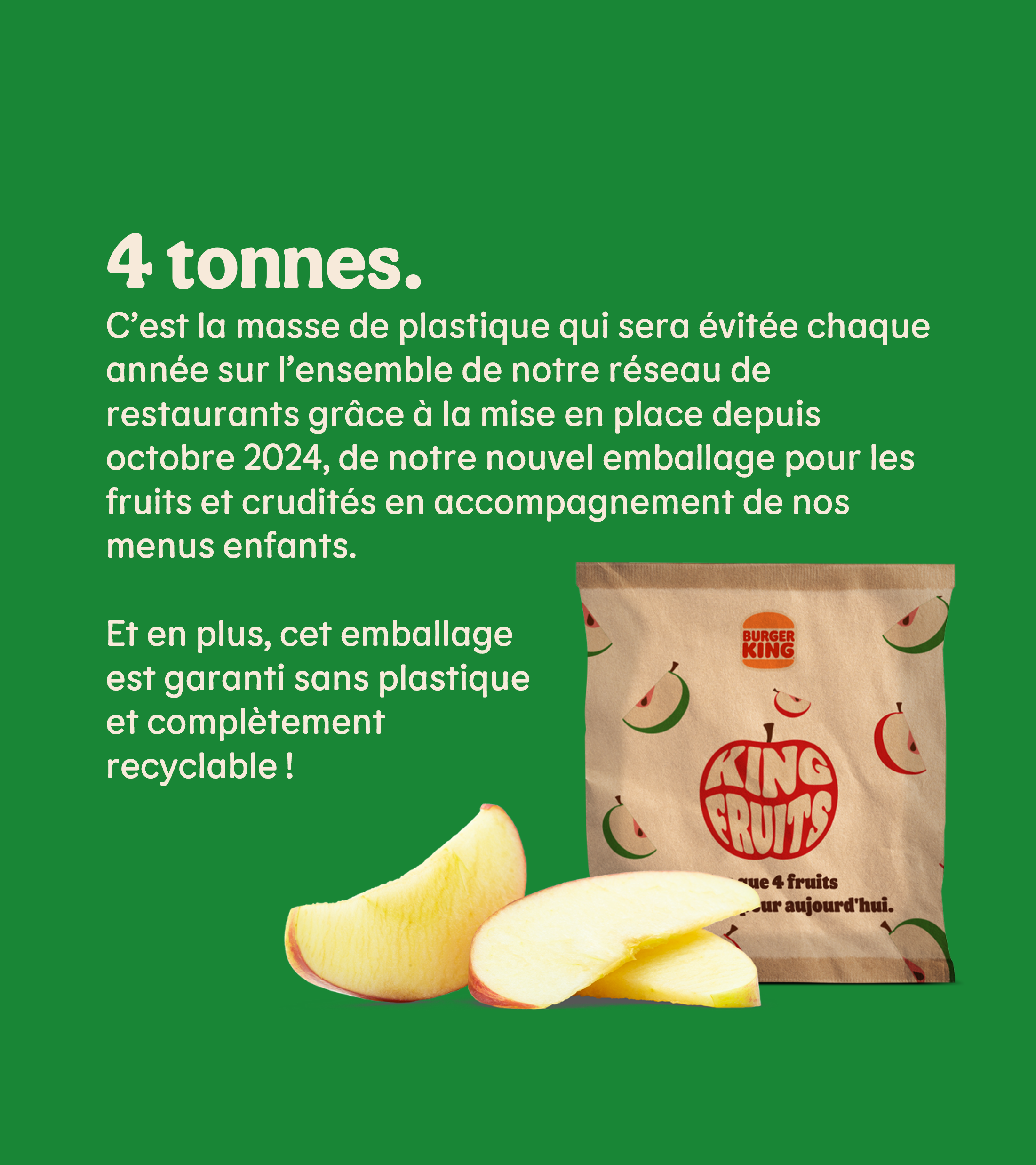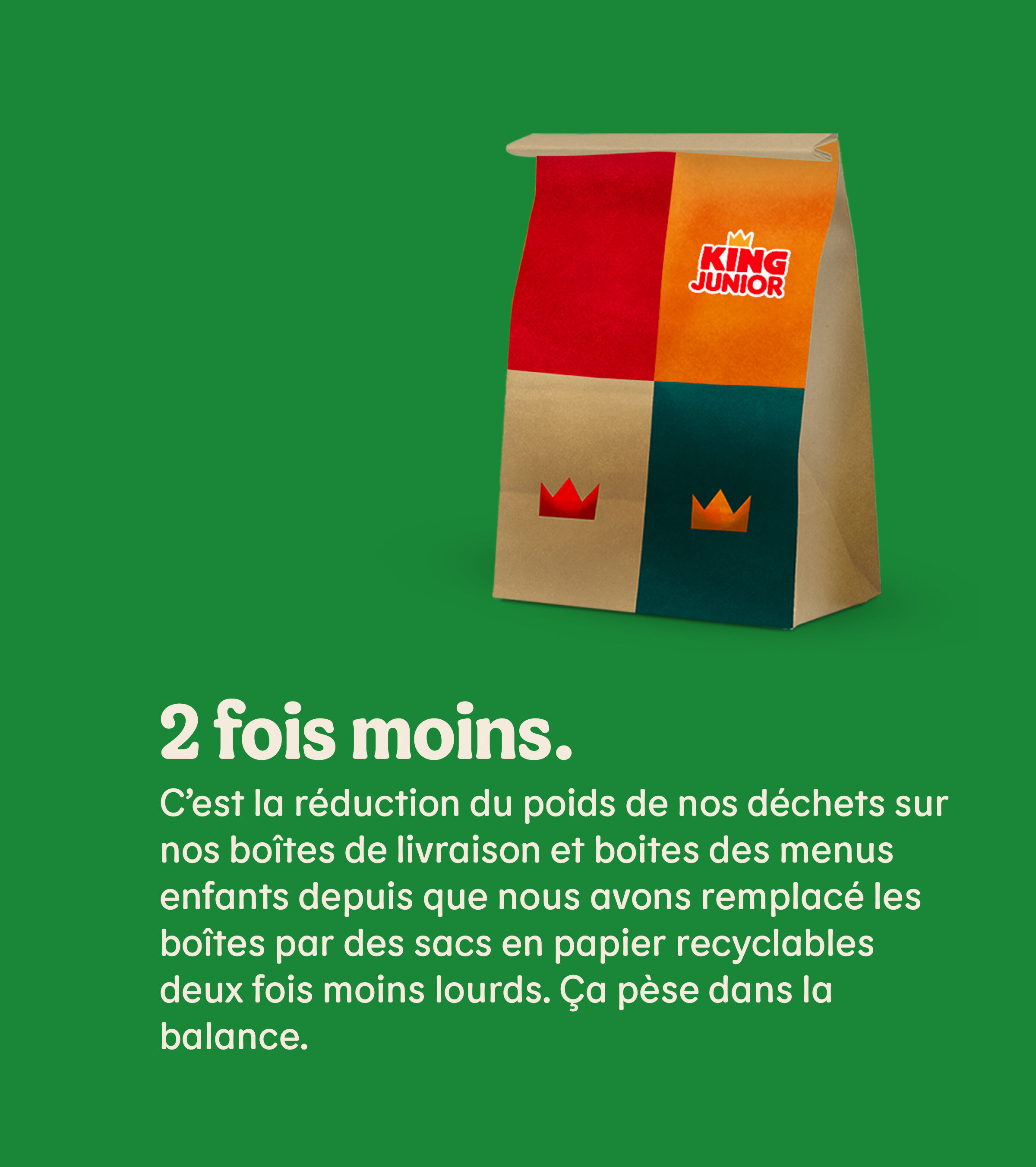En 2020, on avait déjà fait un sacré pas pour l'homme en devenant la 1ère enseigne de restauration rapide à rendre optionnel le jouet dans nos menus enfants pour lutter contre le gaspillage. Vous avez en effet le choix de le prendre ou non et économiser ainsi 50 centimes sur votre menu.