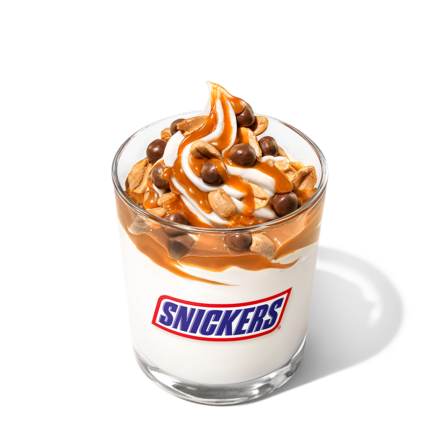 Une onctueuse glace saveur vanille, un délicieux nappage caramel, des éclats de cacahuète et de SNICKERS®